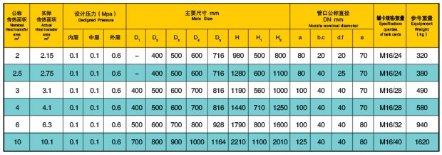 1.搪玻璃片式冷凝器:這是常用的一種搪玻璃套筒式換熱器,為片式結構,片與片之間用墊子隔開并在周圍用特用兩端式長螺栓緊固,從每一片的冷凝面積的大小分為:0.5平方一片,即P0.5型;1平方一片,即P1型;2平方一片,即P2型,3平方以下的一般選用P0.5型,3平方到15平方的一般選擇P1型,15平方以上的一般選用P2型。其適用范圍:使用壓力一般為常壓到3公斤,如果是負壓或超過3公斤要特別說明以增加所用鋼板的厚度,鋼板的標準厚度是6MM,如負壓或超出3公斤則必須8MM厚;使用溫度在0度到200度,冷凝過程中嚴禁大幅度降溫沖擊。搪玻璃片式冷凝器的優點就是可以通過增加或減少片數來改變換熱面積,如果其中一片或幾片出現損壞可以單獨修理或更換,對用戶來說極為方便,有著獨到的價格優勢。